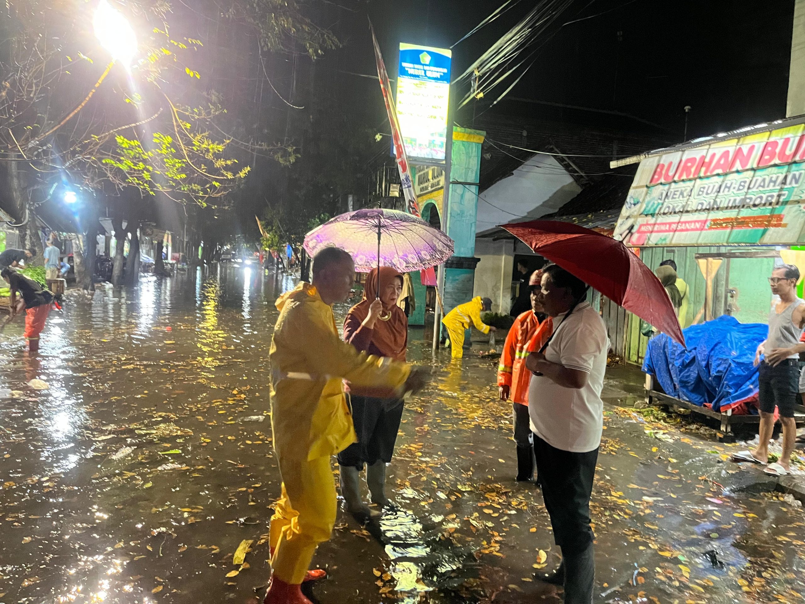 Nganjuk (Jatimsmart.id) – Bupati Nganjuk Marhaen Djumadi turun langsung meninjau lokasi banjir yang terjadi di belakang Pasar Wage, Nganjuk, pada Minggu malam (15/6/2025) sekitar pukul 20.00 WIB. Kunjungan ini dilakukan tak lama setelah laporan warga diterima pukul 19.45 WIB terkait genangan air yang cukup mengganggu aktivitas sekitar.