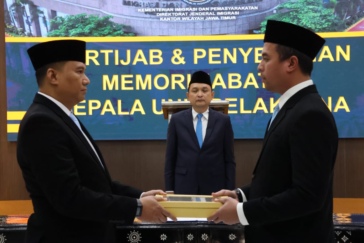 Acara ini turut dihadiri oleh sejumlah pejabat di lingkungan Kantor Wilayah Direktorat Jenderal Imigrasi Jawa Timur serta tamu undangan lainnya. Dengan adanya kepemimpinan baru, diharapkan inovasi serta peningkatan pelayanan publik di bidang keimigrasian dapat terus berjalan, sejalan dengan visi dan misi Direktorat Jenderal Imigrasi.(Red)