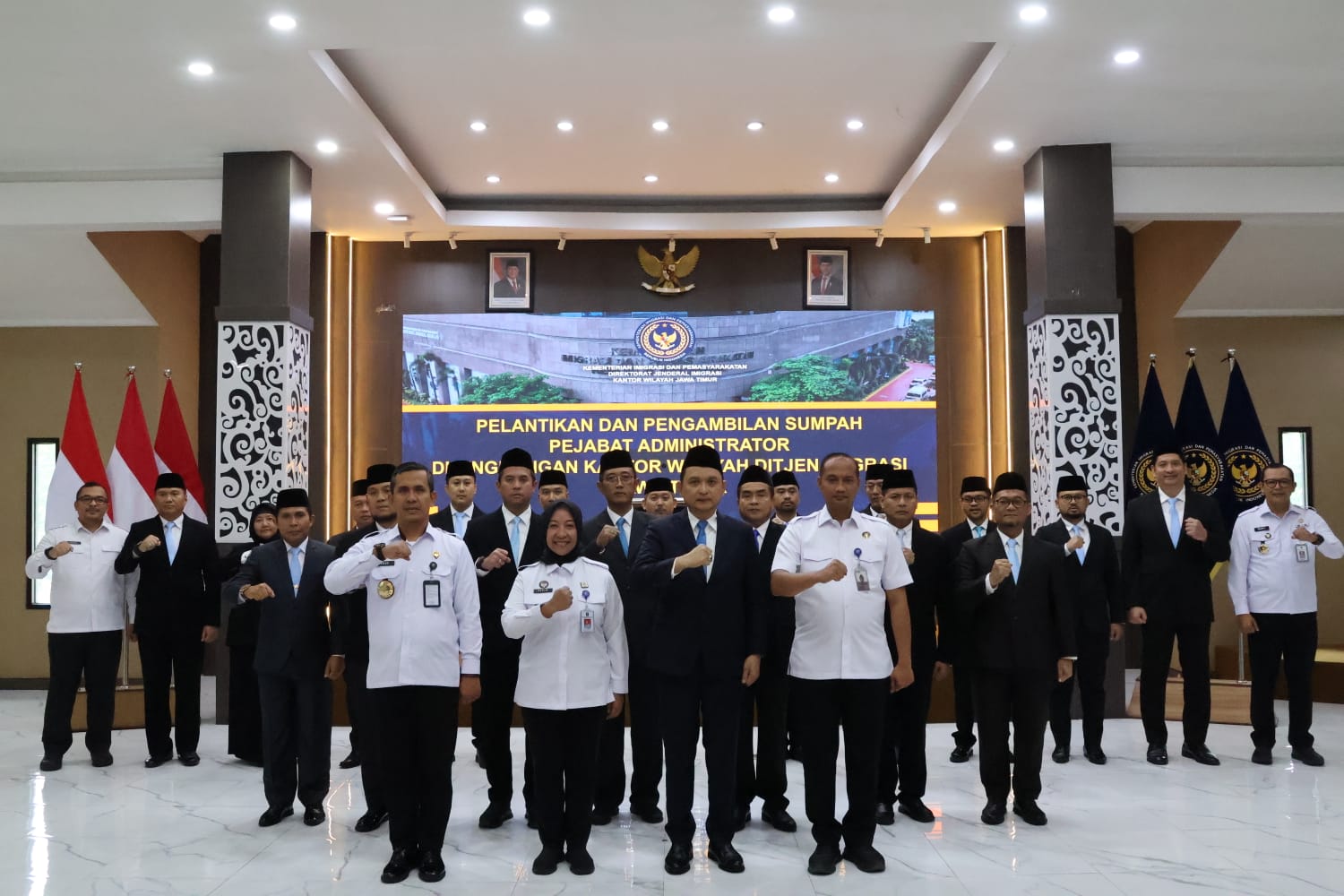 Surabaya, (jatimsmart.id) – Kantor Wilayah Direktorat Jenderal Imigrasi Jawa Timur menggelar acara pelantikan dan serah terima jabatan Kepala Kantor Imigrasi di wilayah Jawa Timur. Salah satu agenda dalam kegiatan ini adalah serah terima jabatan Kepala Kantor Imigrasi Kediri dari Widhi Mosakajaya Arradiko kepada penggantinya, Antonius Frizky Saniscara Cahaya Putra. Acara berlangsung secara khidmat di Aula Kantor Imigrasi Kelas I Khusus TPI Surabaya.