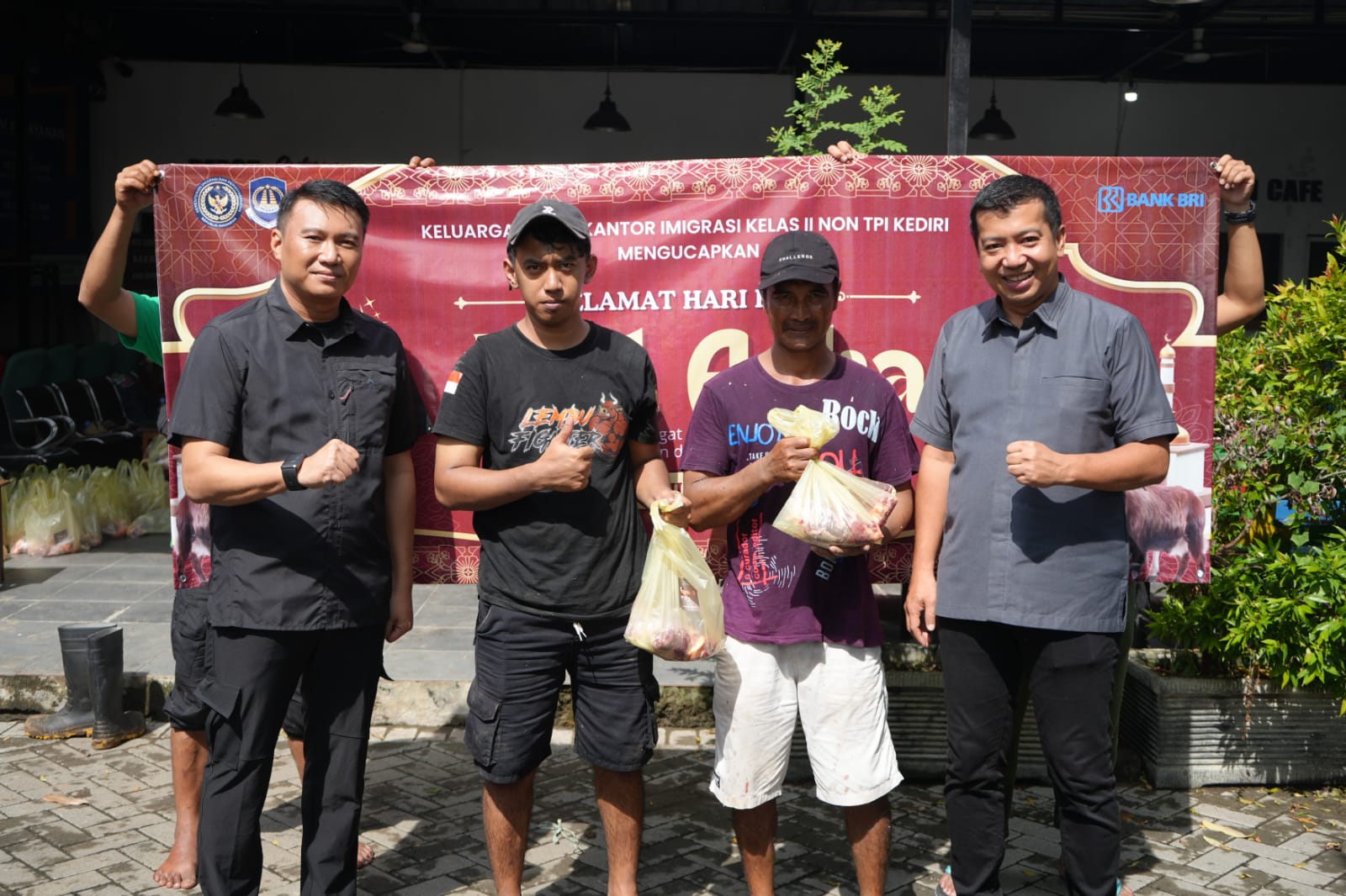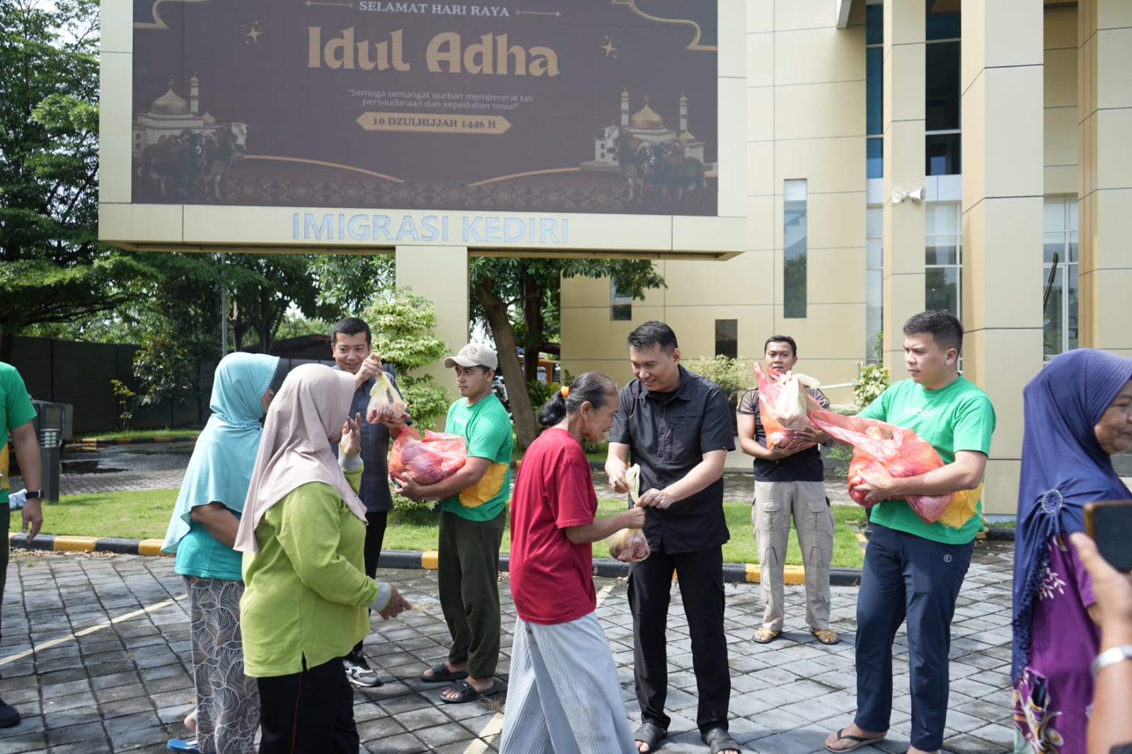 mempererat jalinan silaturahmi antar pegawai di Kantor Imigrasi Kediri dalam berbuat kebaikan dan menjalin hubungan baik dengan masyarakat. Semoga daging kurban ini membawa kebahagiaan dan bermanfaat bagi masyarakat.” Ujar Antonius Frizky Saniscara Cahya Putra, Kepala Kantor Imigrasi Kediri.