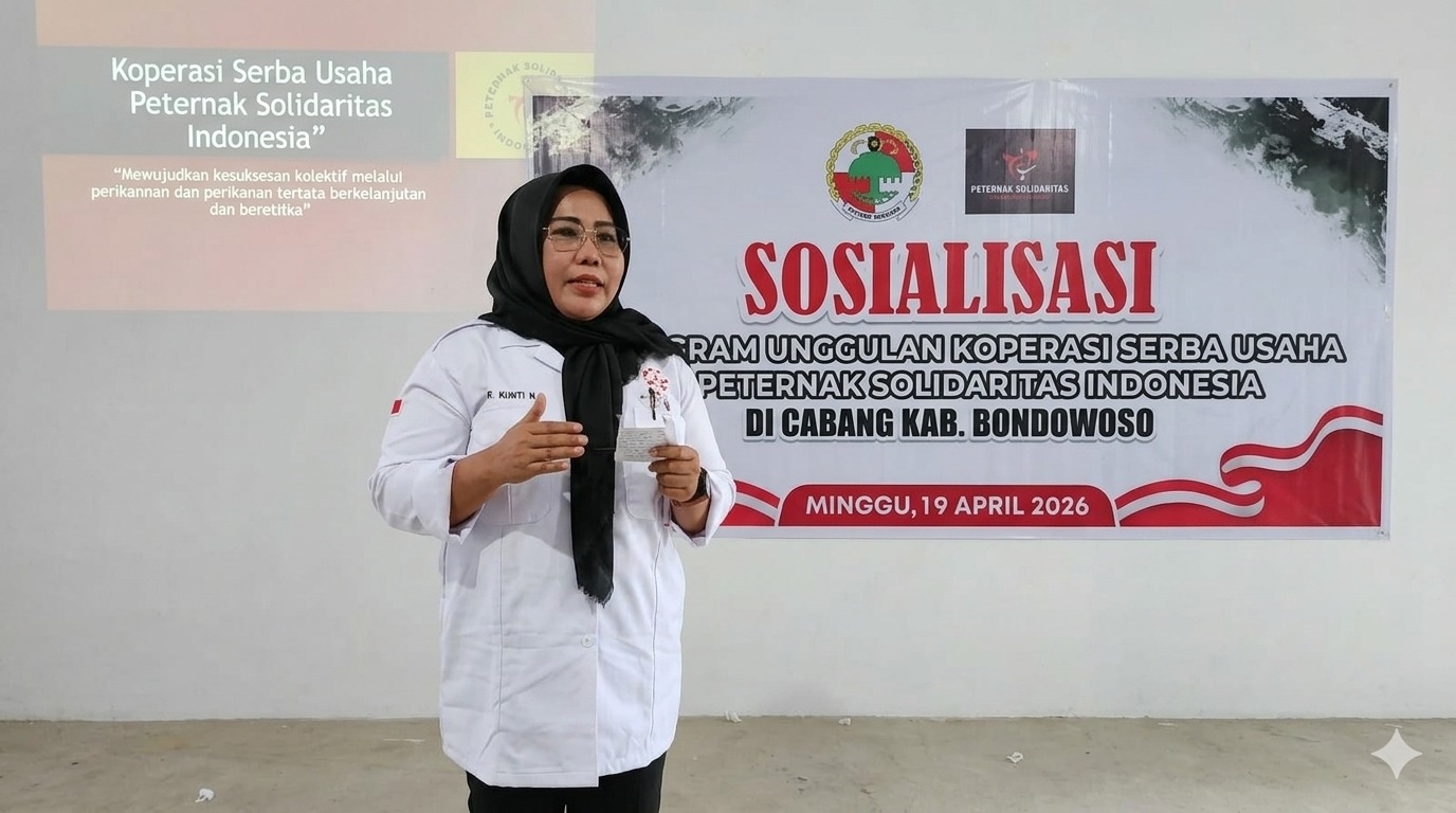 Bondowoso (Jatimsmart.id) – Koperasi Peternak Solidaritas Indonesia (KPSI) terus memperluas jangkauan programnya di berbagai wilayah Jawa Timur. Terbaru, KPSI menggelar kegiatan sosialisasi di Kantor DPD PSI Bondowoso yang berlokasi di Jalan Brigpol Sudarlan, Desa Penambangan, Kecamatan Curah Dami, Minggu (19/04/2026).