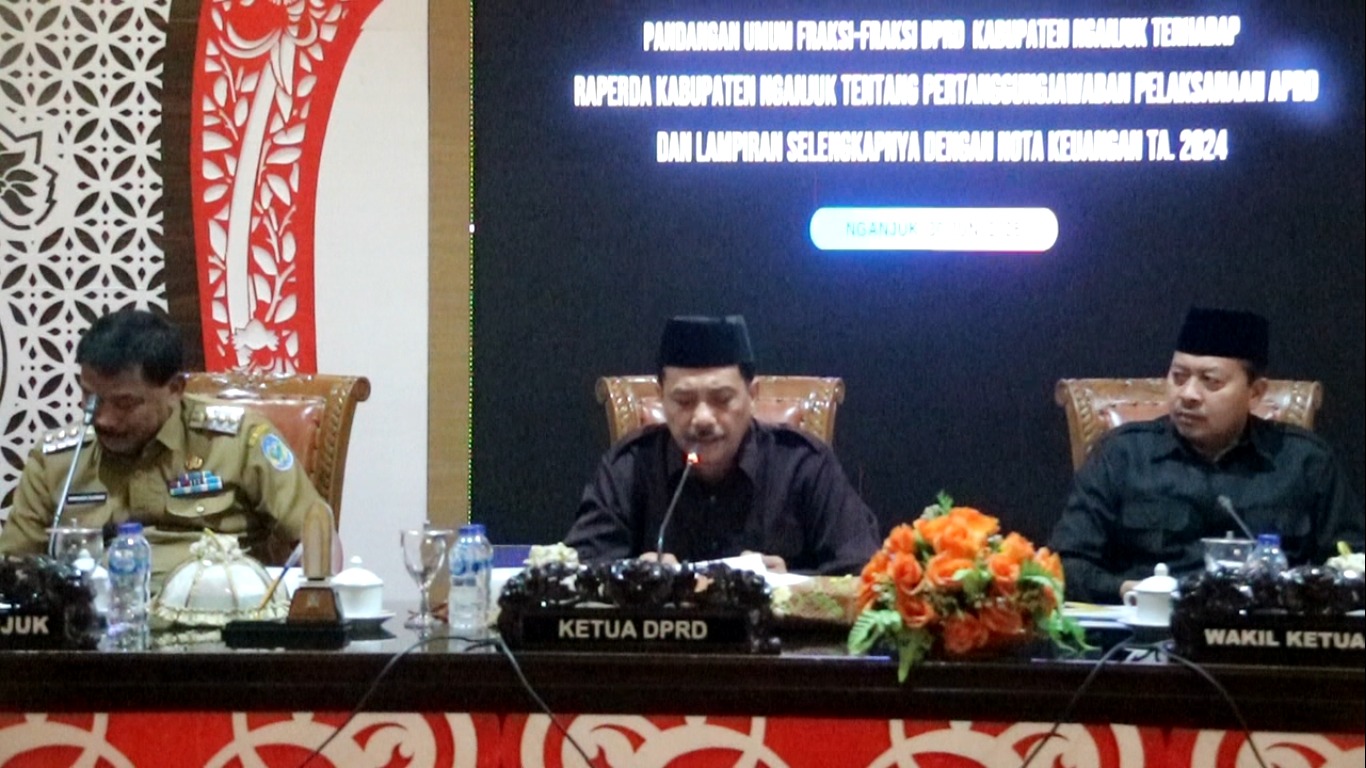 Rapat Paripurna, DPRD Nganjuk Sampaikan Pandangan Umum Fraksi Terhadap RAPERDA LKPJ APBD 2024