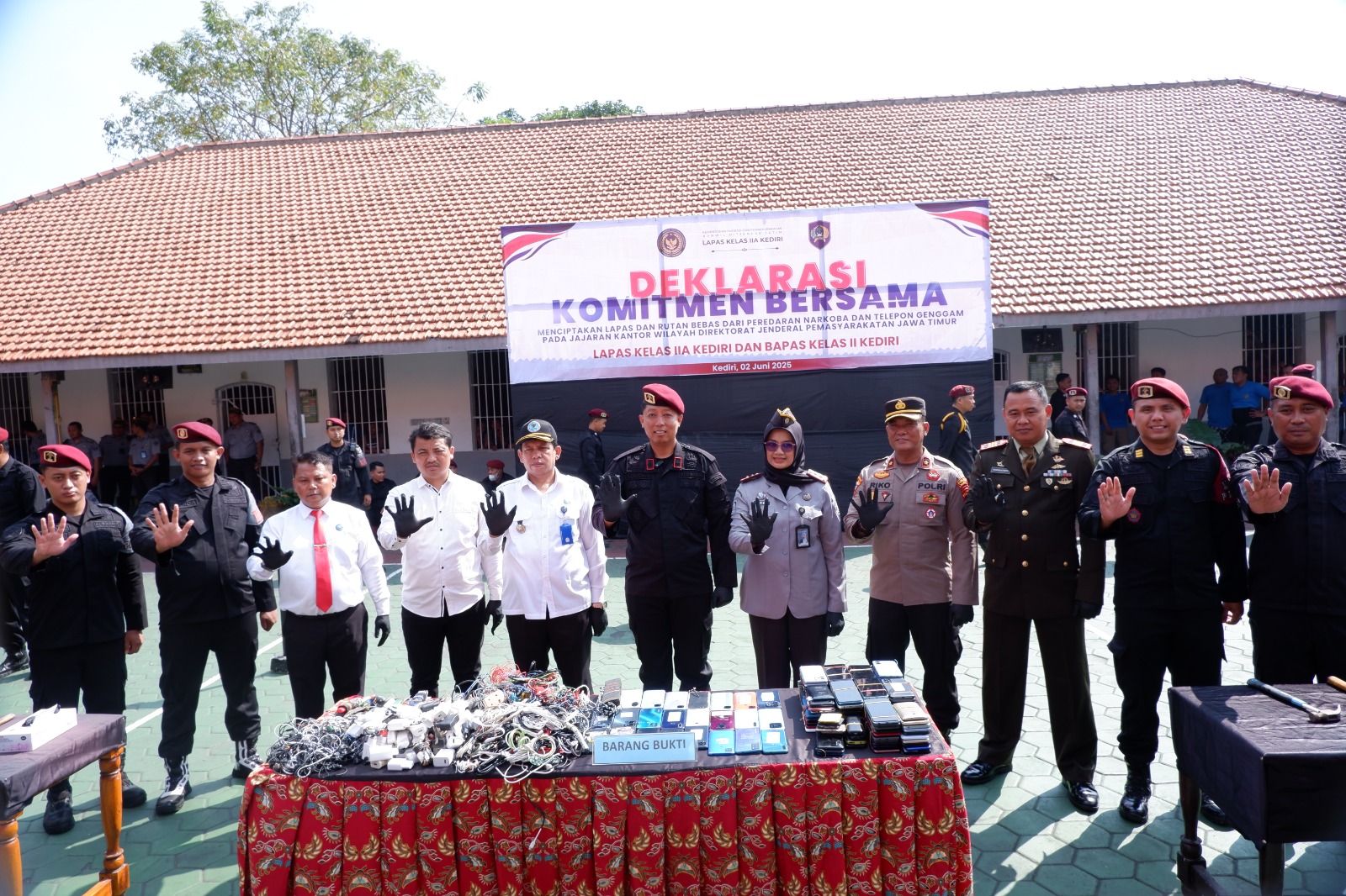 Kediri, (jatimsmart.id) — Lapas Kelas IIA Kediri bersama Balai Pemasyarakatan (Bapas) Kelas II Kediri menyelenggarakan kegiatan Deklarasi Komitmen Bersama Menciptakan Lapas dan Rutan Bebas dari Peredaran Narkoba dan Telepon Genggam. Kegiatan ini merupakan bagian dari gerakan serentak di jajaran Kantor Wilayah Direktorat Jenderal Pemasyarakatan Jawa Timur, (02/06/2025).