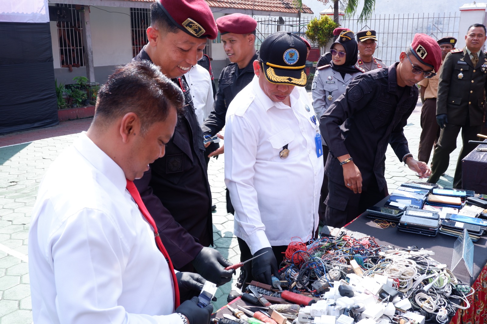 Puncak dari rangkaian kegiatan ini ditandai dengan pemusnahan barang bukti hasil razia internal selama rentang tahun 2022 hingga 2025, berupa 129 unit handphone serta puluhan kabel dan adaptor charger. Tidak hanya disaksikan, seluruh tamu undangan dari unsur TNI, Polri, dan BNN turut serta secara langsung dalam proses pemusnahan sebagai bentuk simbolik dukungan perang terhadap narkoba dan HP di lingkungan Lapas.